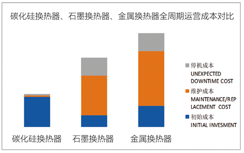 購買、保養維護、意外停機等綜合成本優于石墨及其它金屬換熱器。